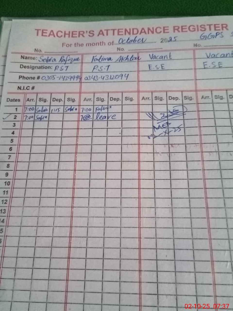 | Name: SO**** RA**** Designation: (School Headmaster's/Headmistress's) PST Phone/Cell Number: 03**** |