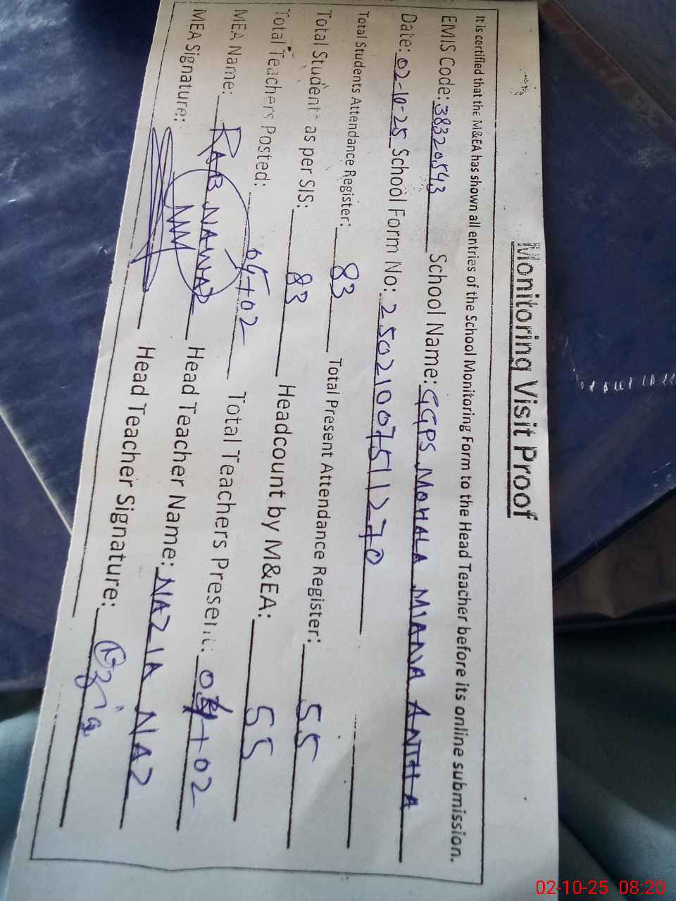 | EMIS Code: 38320543 | Name of School: GGPS MC MOHALLAH MIANA ANTHA | |||