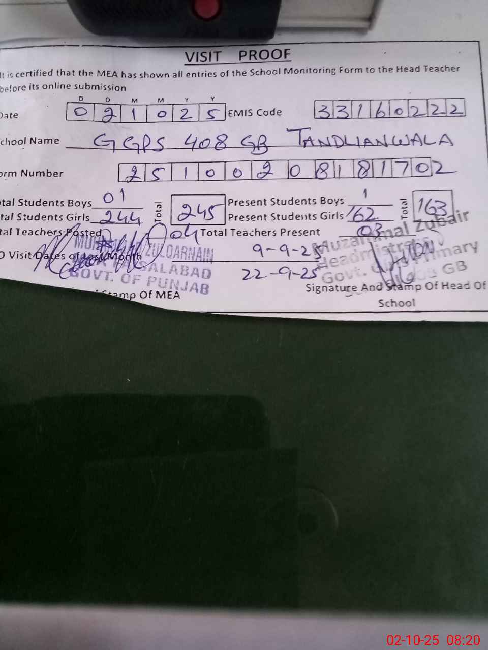 | EMIS Code: 33160222 | Name of School: GGPS CHAK 408 GB TANDLIANWALA | |||