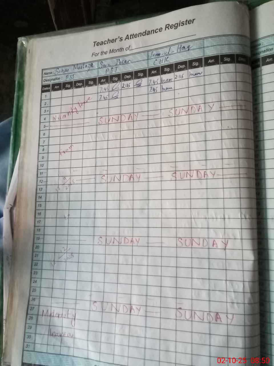 | Name: Sa**** Mu**** Designation: (School Headmaster's/Headmistress's) PST Phone/Cell Number: 03**** |