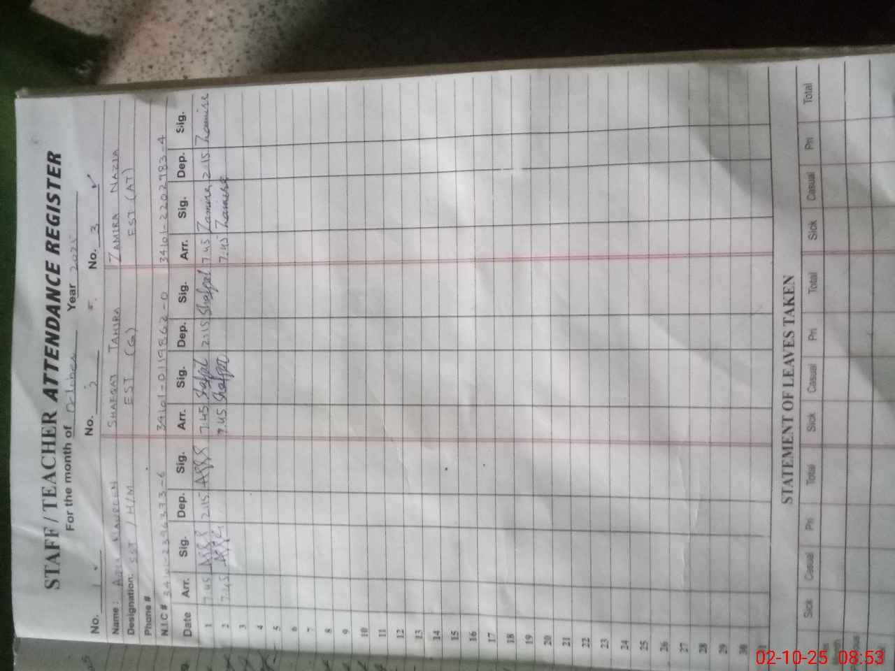 | Name: AQ**** NO**** Designation: (School Headmaster's/Headmistress's) S.S.T.(GEN) Phone/Cell Number: 03**** |