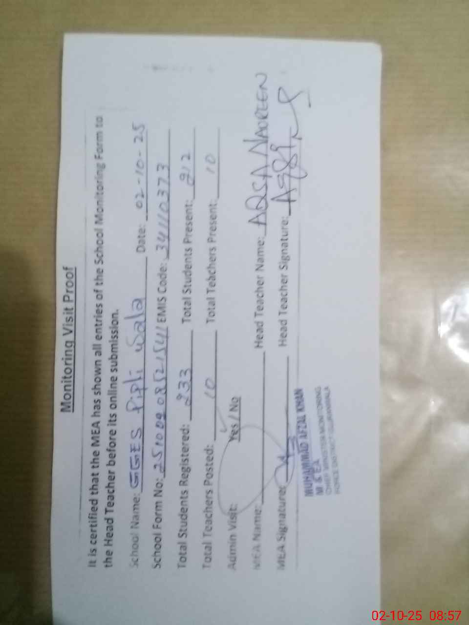 | EMIS Code: 34110373 | Name of School: GGES PIPLI WALA | |||