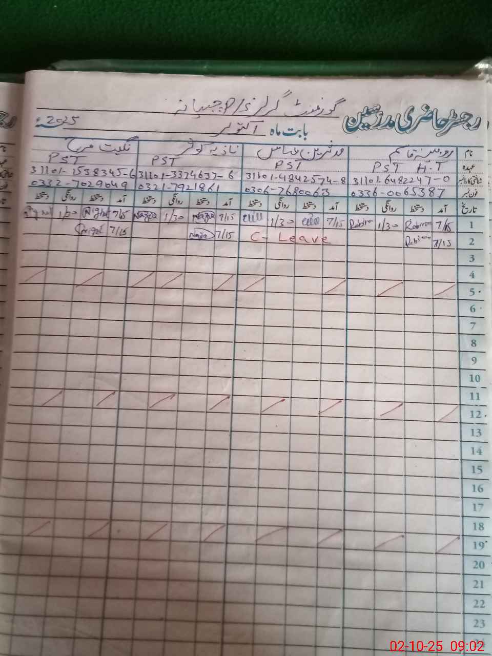 | Name: RO**** Qa**** Designation: (School Headmaster's/Headmistress's) PST Phone/Cell Number: 03**** |