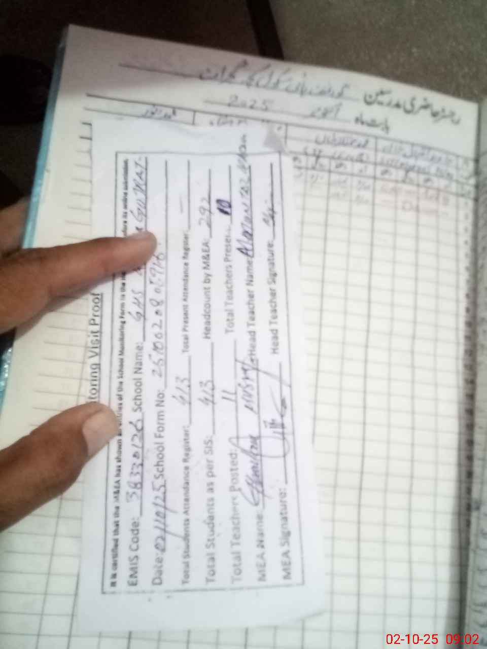 | Attendance Register | Head Teacher | MEA with School | Visit Proof |