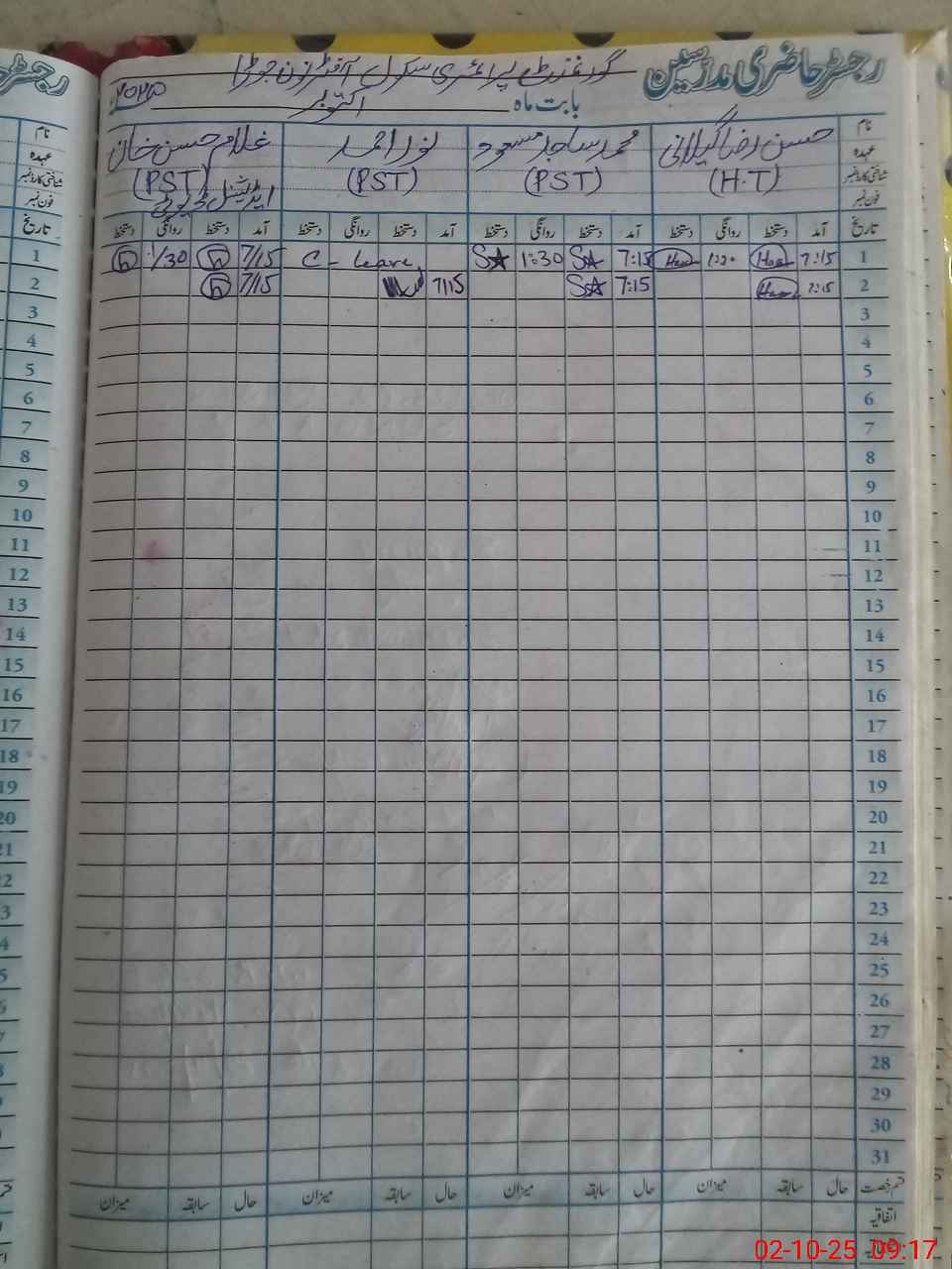 | Name: HA**** RA**** GI**** Designation: (School Headmaster's/Headmistress's) PST Phone/Cell Number: 03**** |