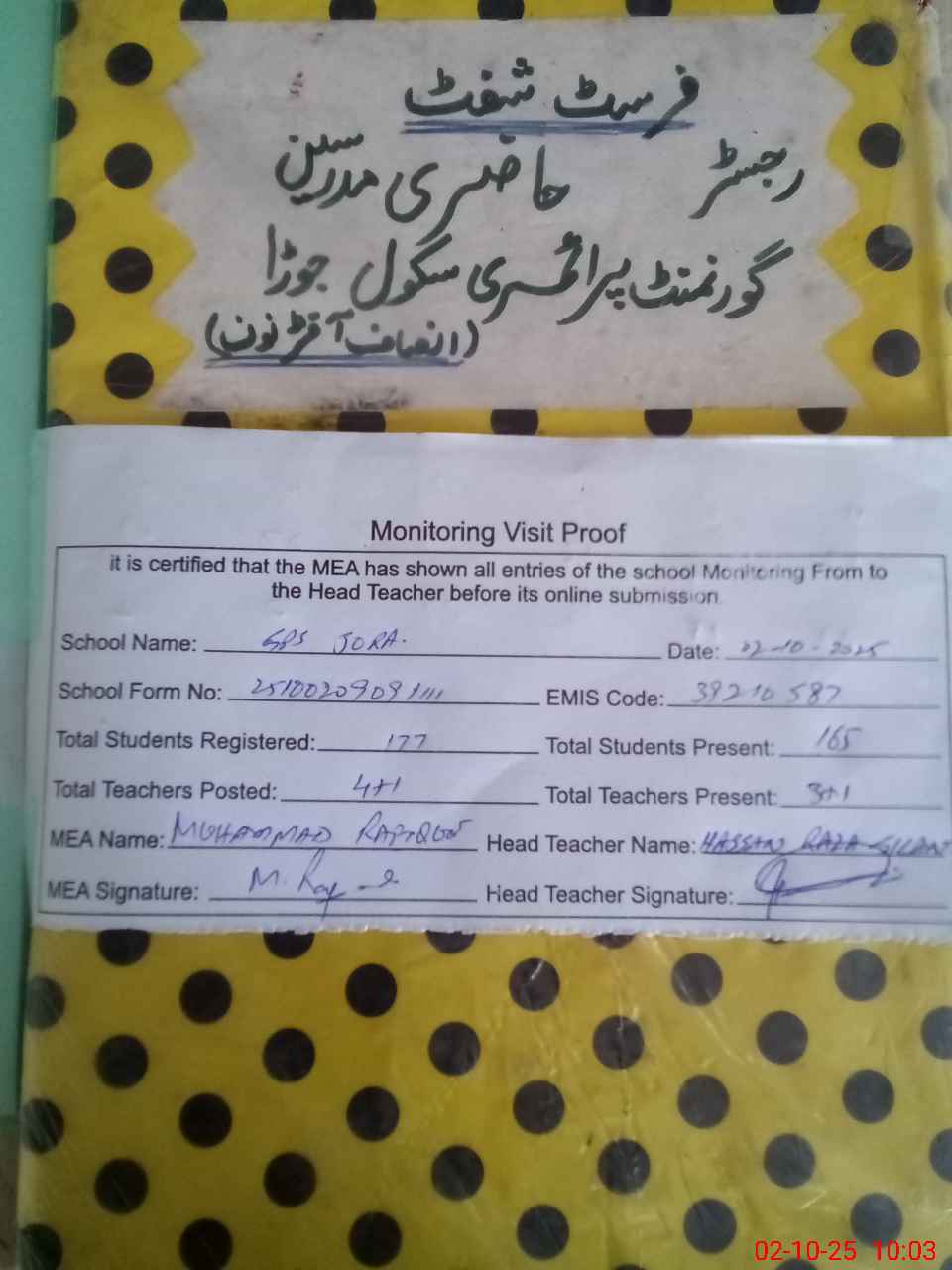 | EMIS Code: 39210587 | Name of School: GPS JORRA | |||