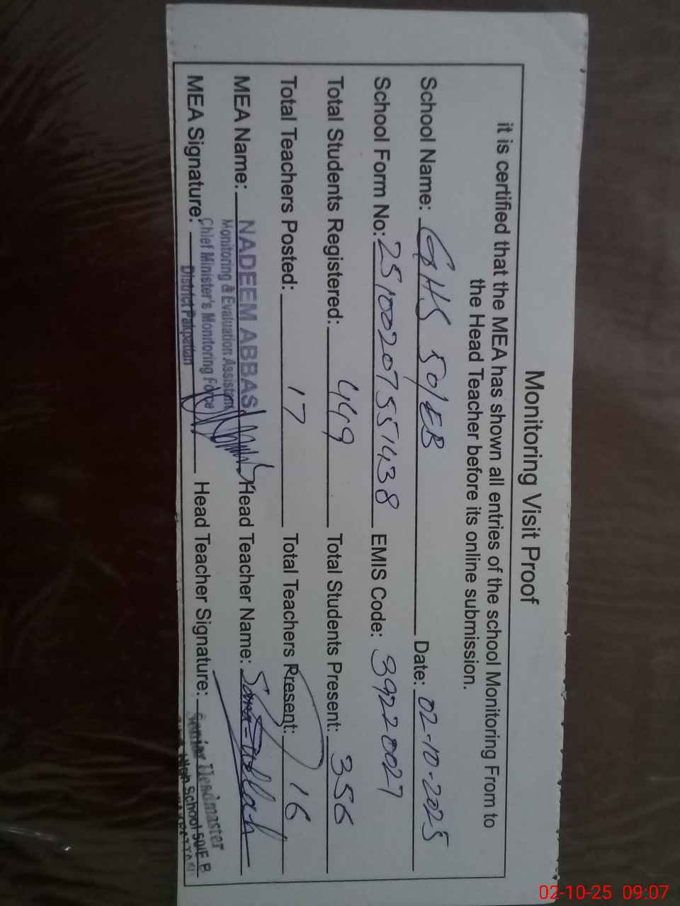 | EMIS Code: 39220027 | Name of School: GHS 50/EB | |||