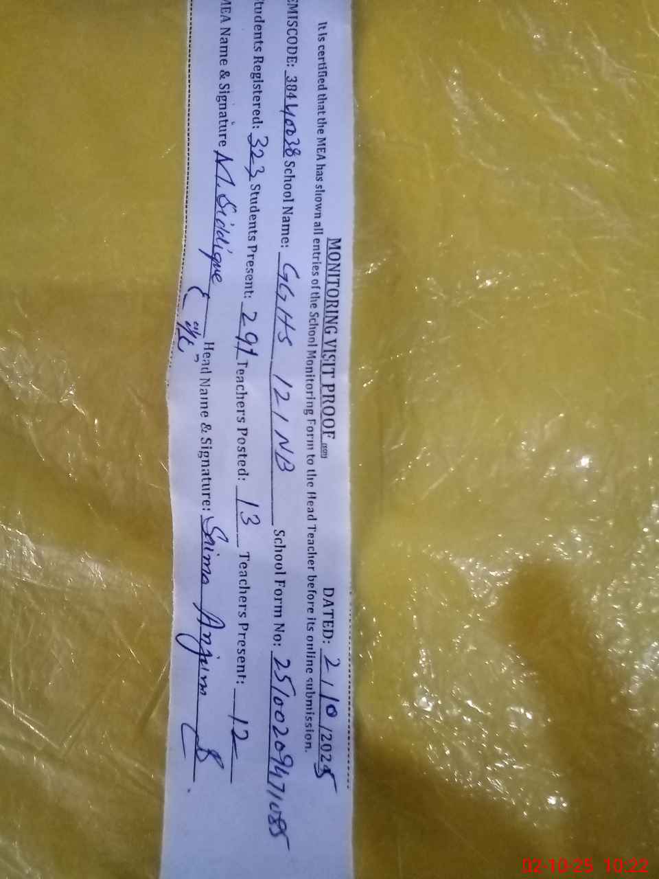| EMIS Code: 38440038 | Name of School: GGHS CHAK NO.121 NB | |||