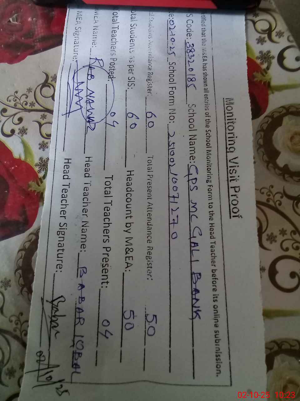 | EMIS Code: 38320185 | Name of School: GPS MC GALI BANK | |||