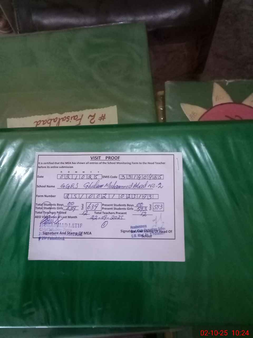 | EMIS Code: 33140485 | Name of School: GGES GHULAM MUHAMMAD ABAD NO. 2 | |||