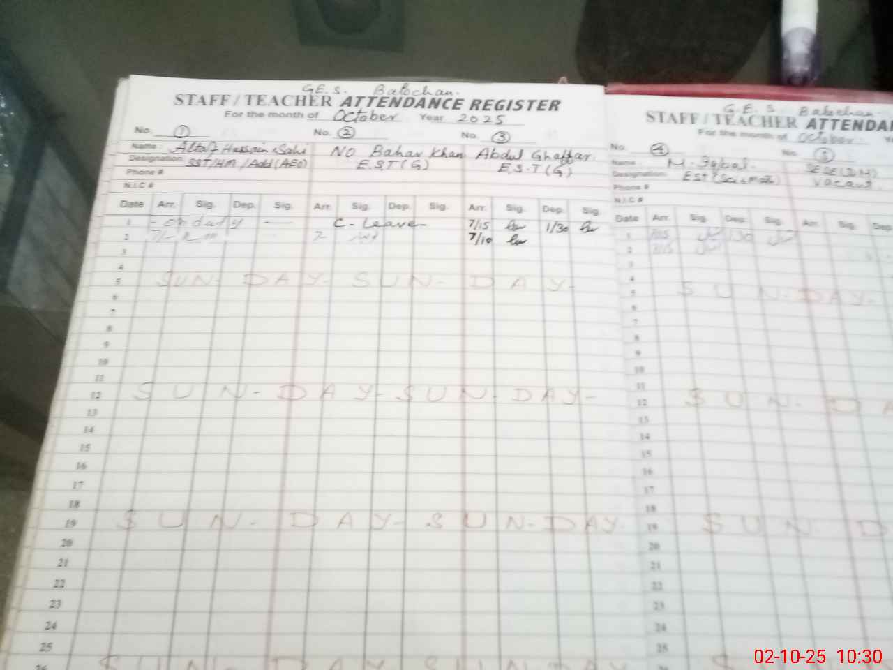 | CNIC | Full Name | Designation | R/C | Absence During Last Calender Month |