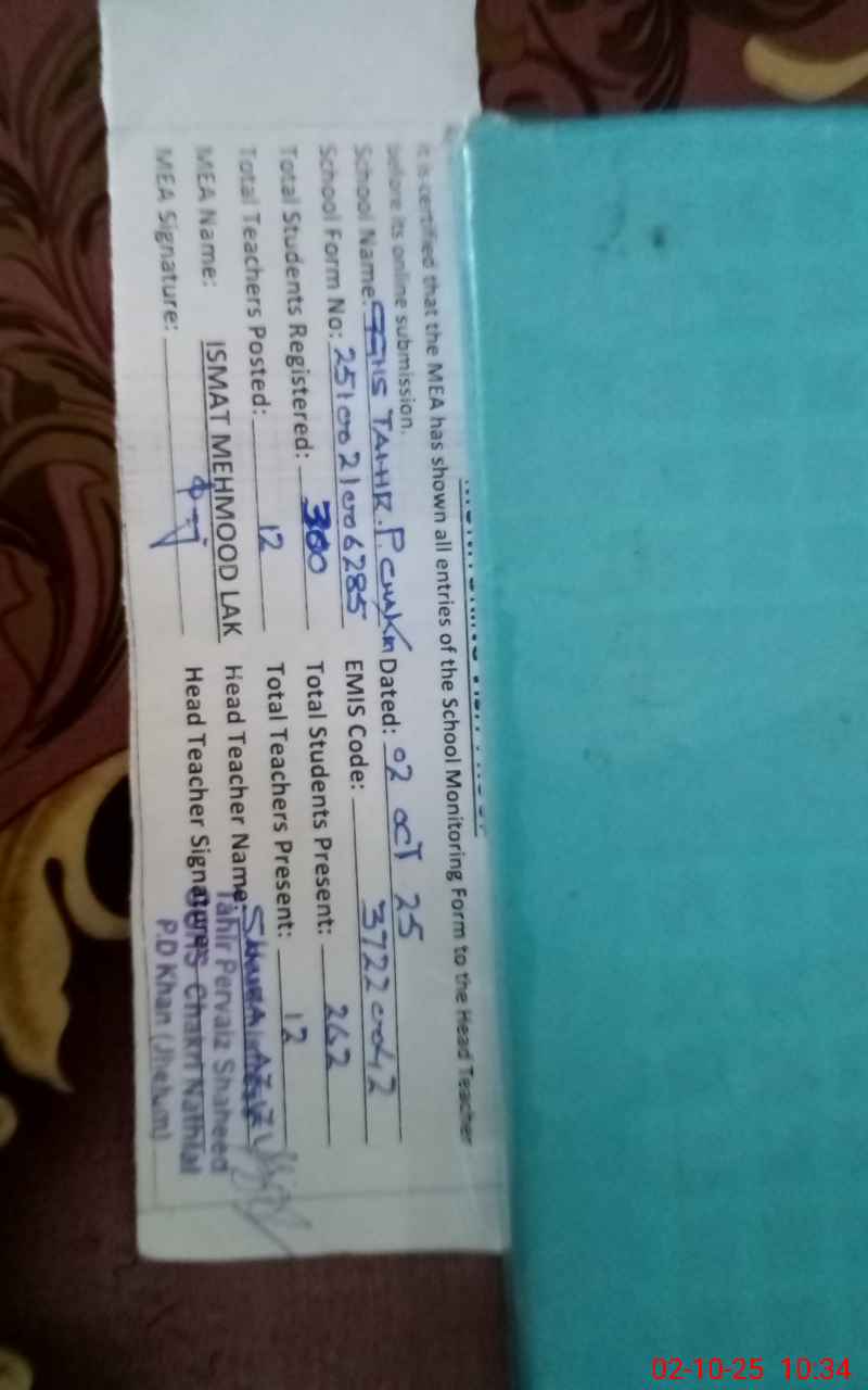 | EMIS Code: 37220042 | Name of School: GGHS TAHIR PARVAIZ SHAHEED CHAKRI NATHIAL | |||