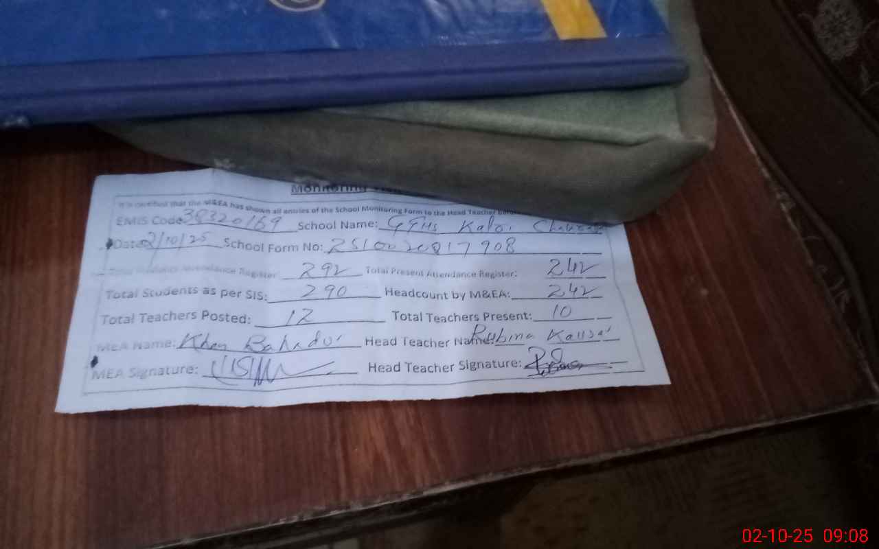 | EMIS Code: 38320169 | Name of School: GGHS KALRI CHAKRALA MIANWALI | |||