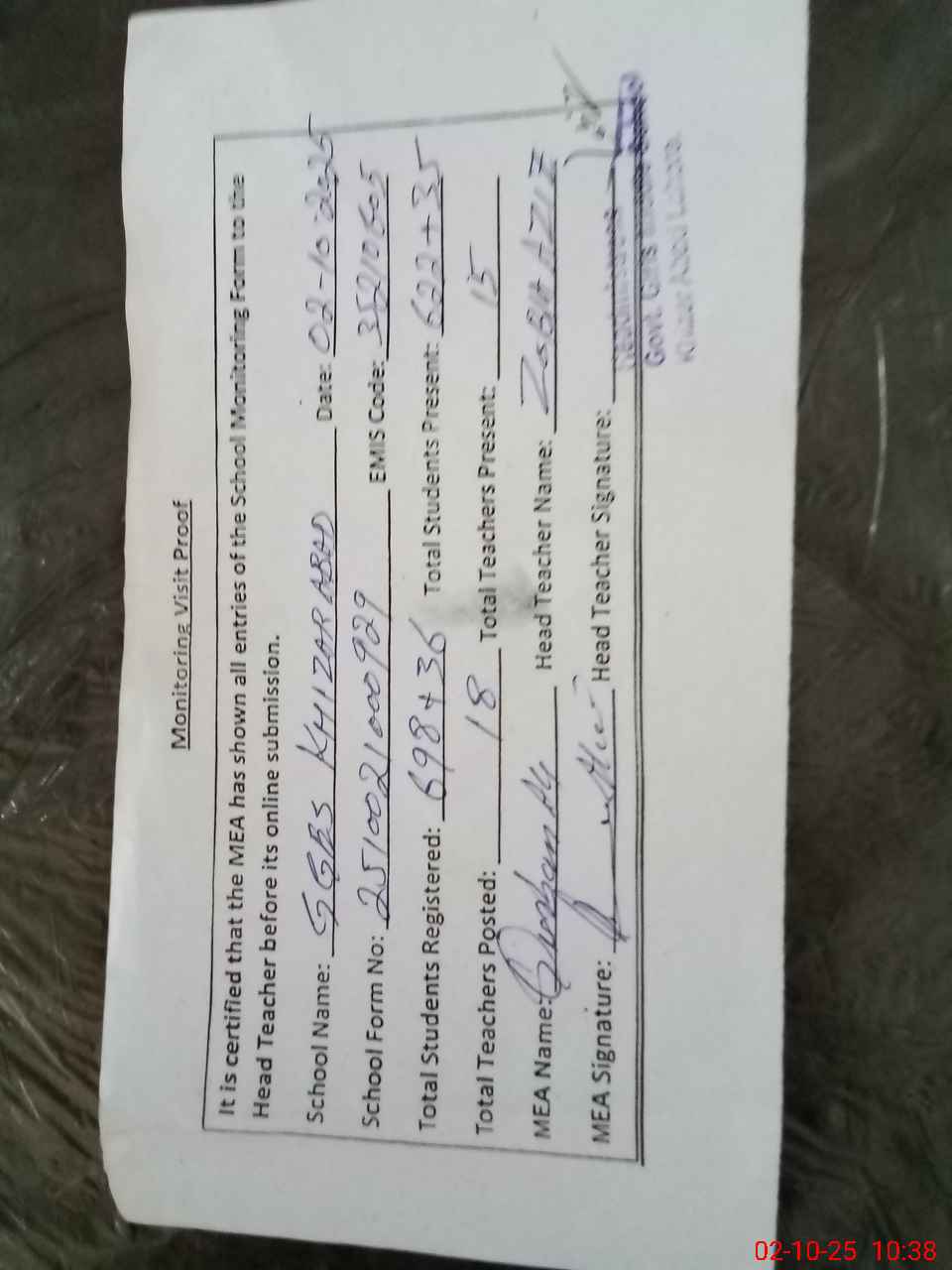| Certified that this School was Inspected by the Undersigned MEA/DMO Today and the Information Stated Above is as Per Record. | |||||