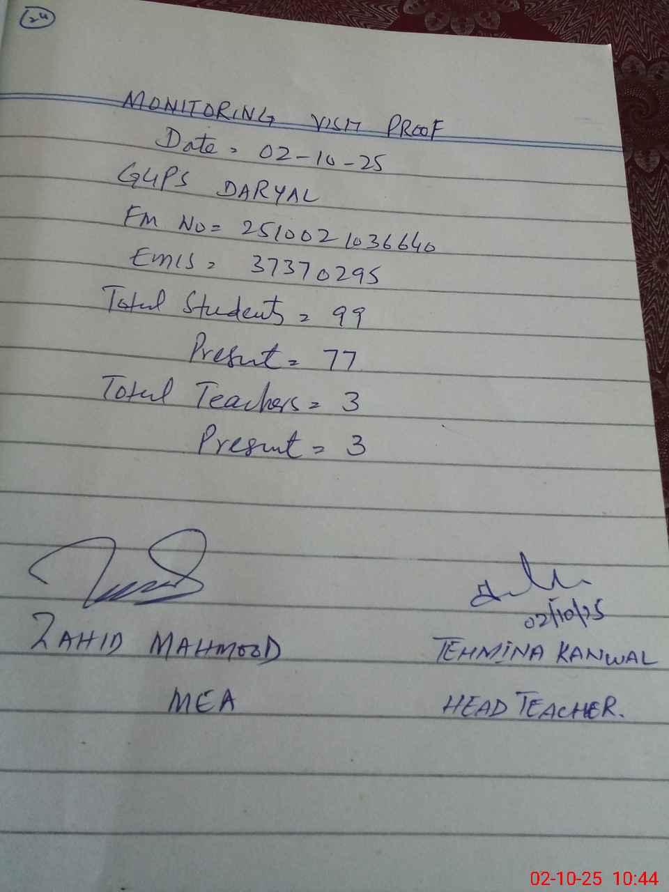 | EMIS Code: 37370295 | Name of School: GGPS DARYAL | |||