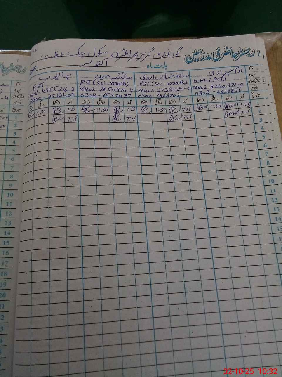 | Name: IR**** SH**** Designation: (School Headmaster's/Headmistress's) PST Phone/Cell Number: 03**** |