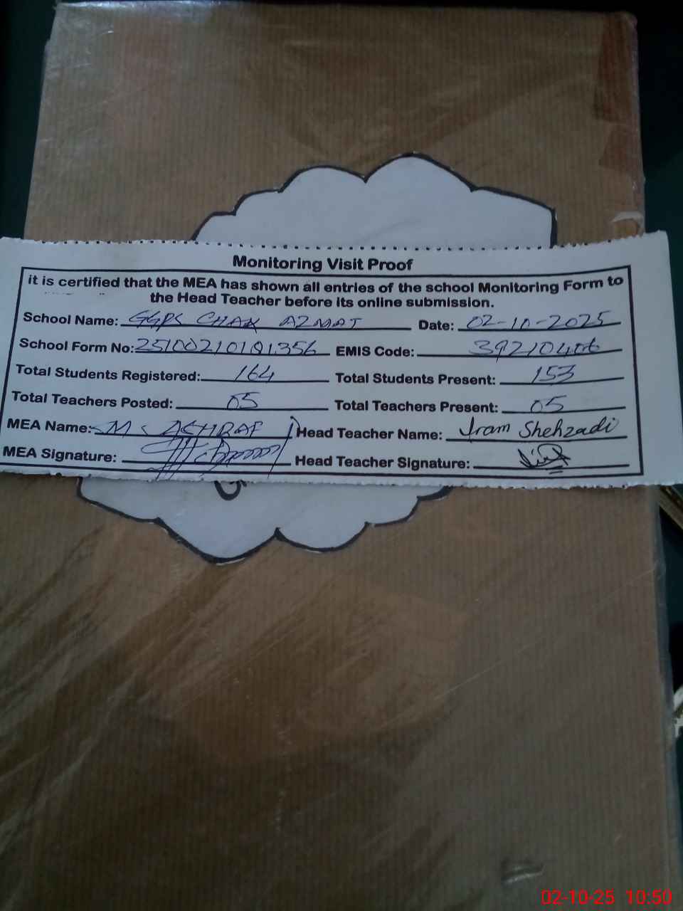| EMIS Code: 39210406 | Name of School: GGPS CHAK AZMAT | |||
