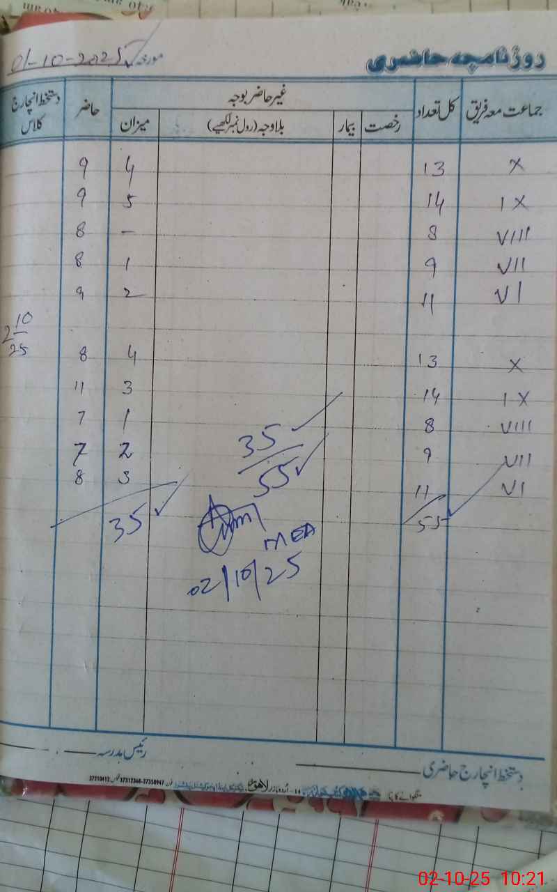 | Attendance Register | Head Teacher | MEA with School | Visit Proof |