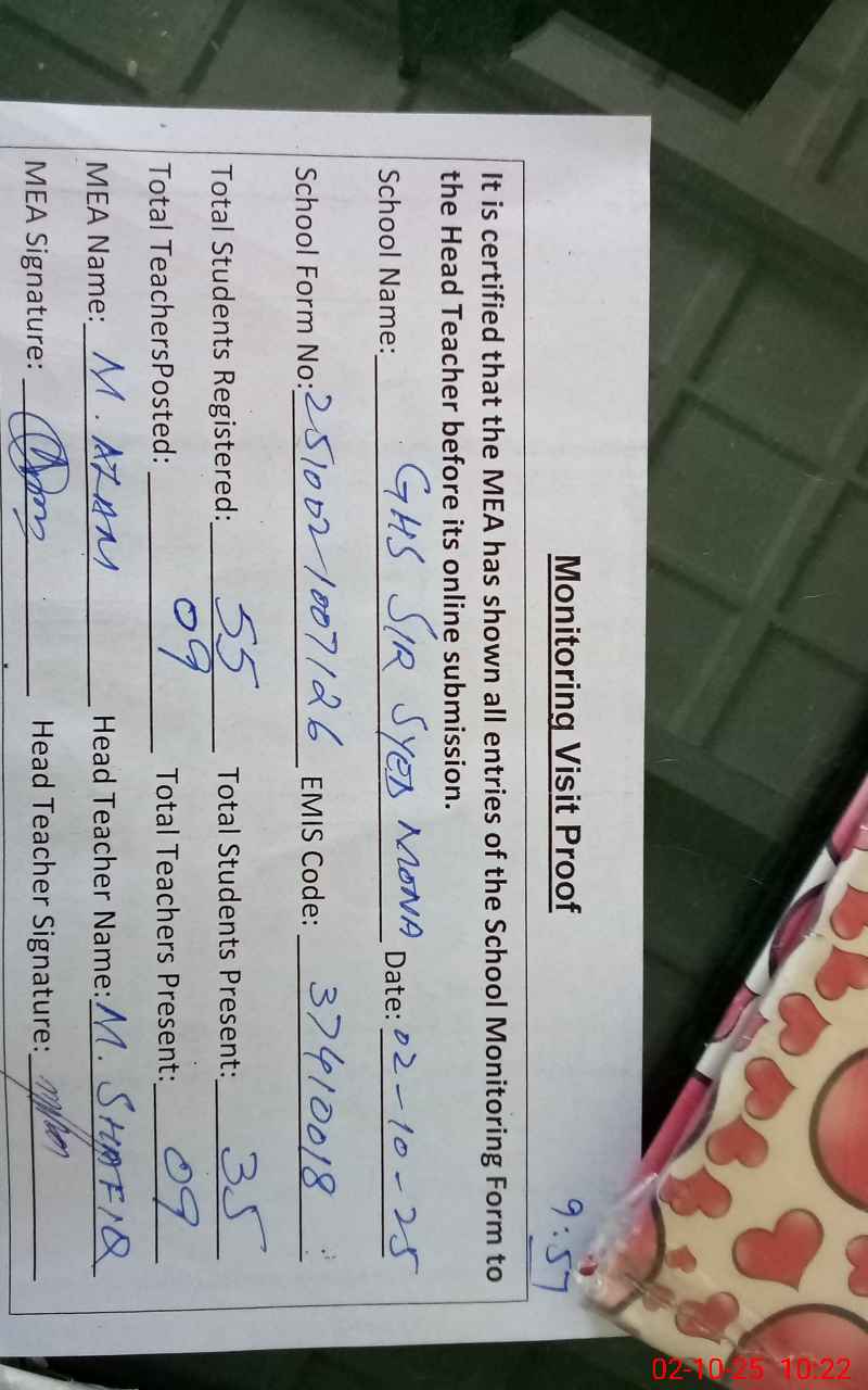 | EMIS Code: 37410018 | Name of School: GHS SIR SYED MONA | |||