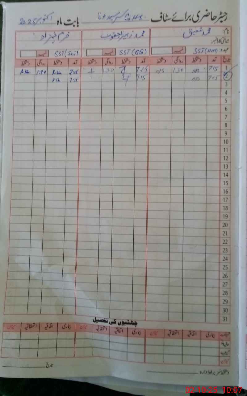 | CNIC | Full Name | Designation | R/C | Absence During Last Calender Month |