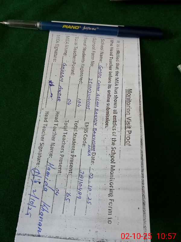 | Monitoring Date: 02-10-2025 | Start Time: 02-10-2025 10:33 AM | End Time: 02-10-2025 10:57 AM | Name of MEA: Gh**** Ak**** Kh**** | |