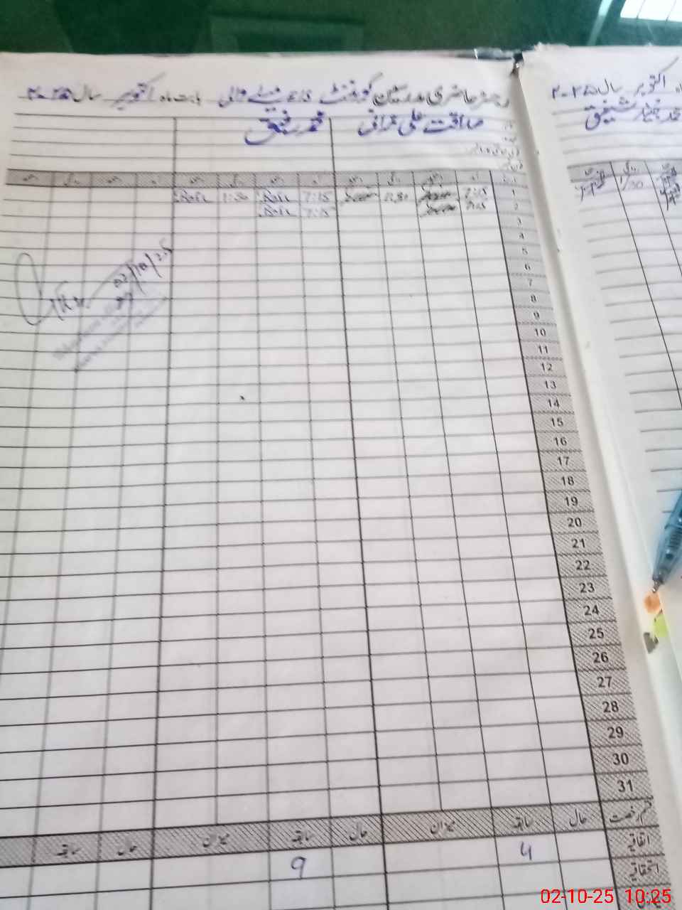 | CNIC | Full Name | Designation | R/C | Absence During Last Calender Month |