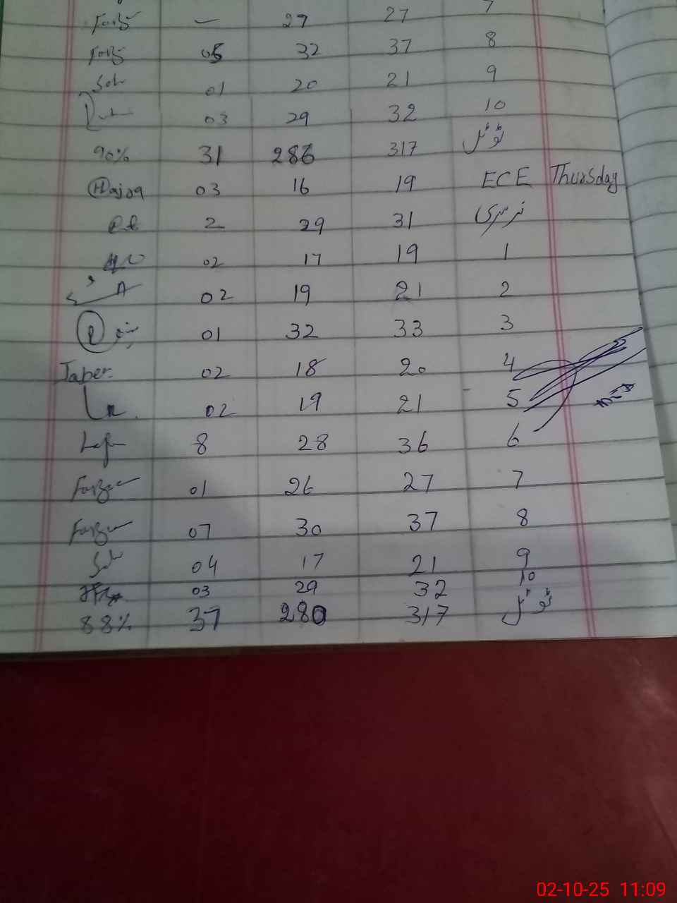 | No. of Students Present - Female | 16 | 0 | 29 | 17 | 19 | 32 | 18 | 19 | 28 | 26 | 30 | 17 | 29 | 280 | ||