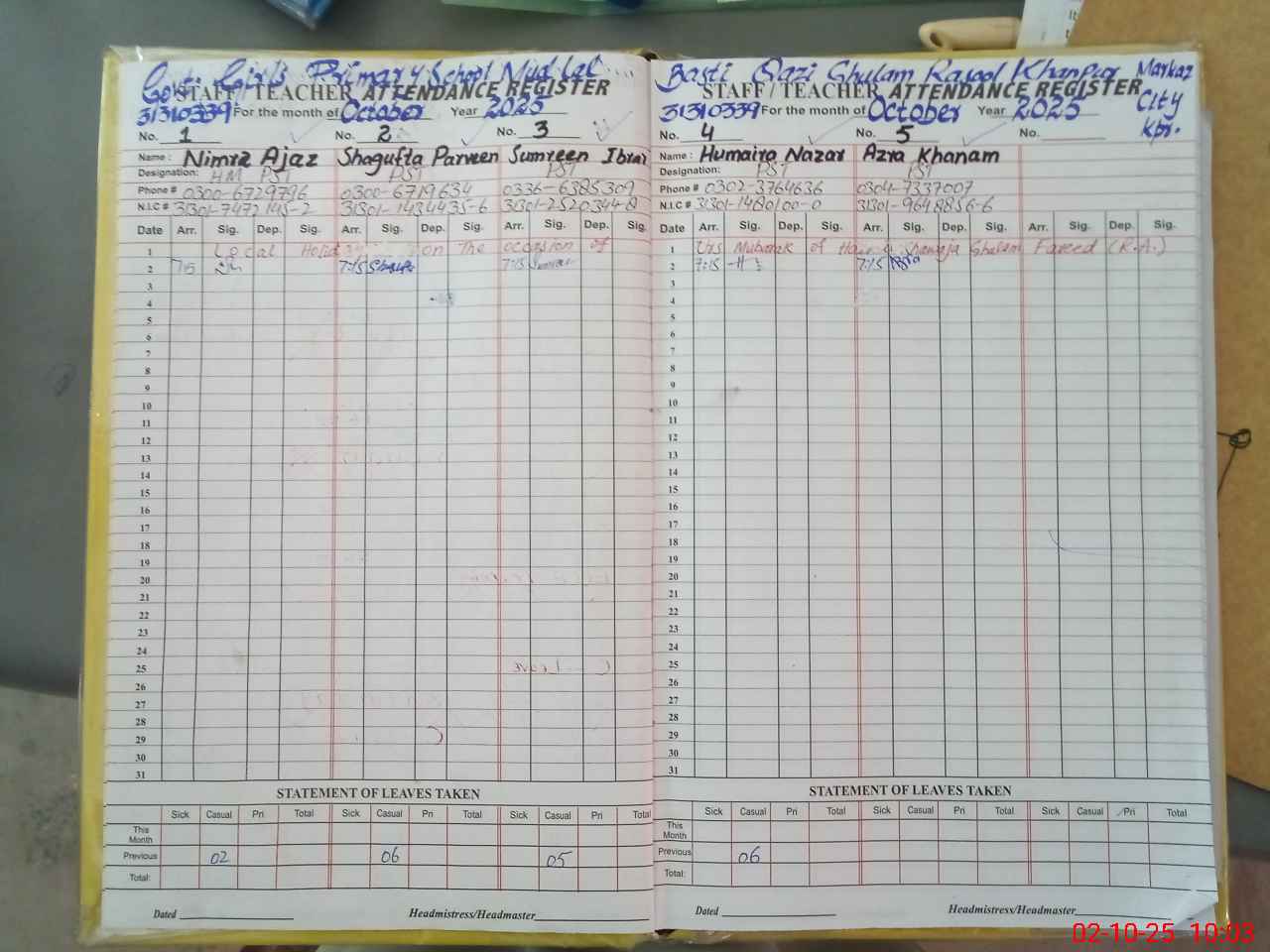 | EMIS Code: 31310339 | Name of School: GGPS MUD LAL | |||