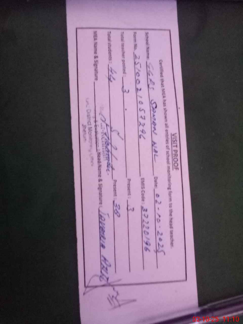 | Certified that this School was Inspected by the Undersigned MEA/DMO Today and the Information Stated Above is as Per Record. | |||||