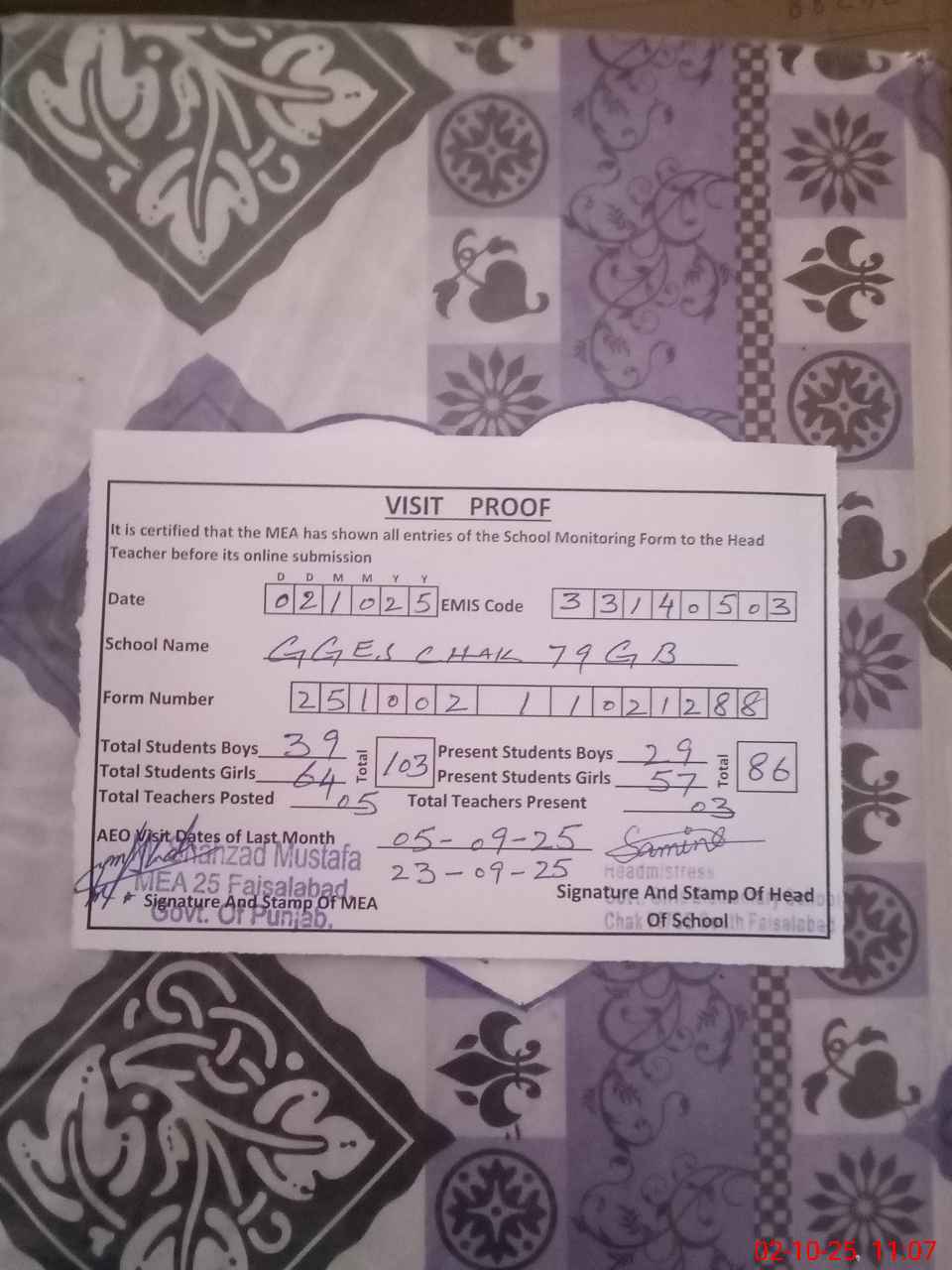| EMIS Code: 33140503 | Name of School: GGES CHAK NO 79 GB | |||