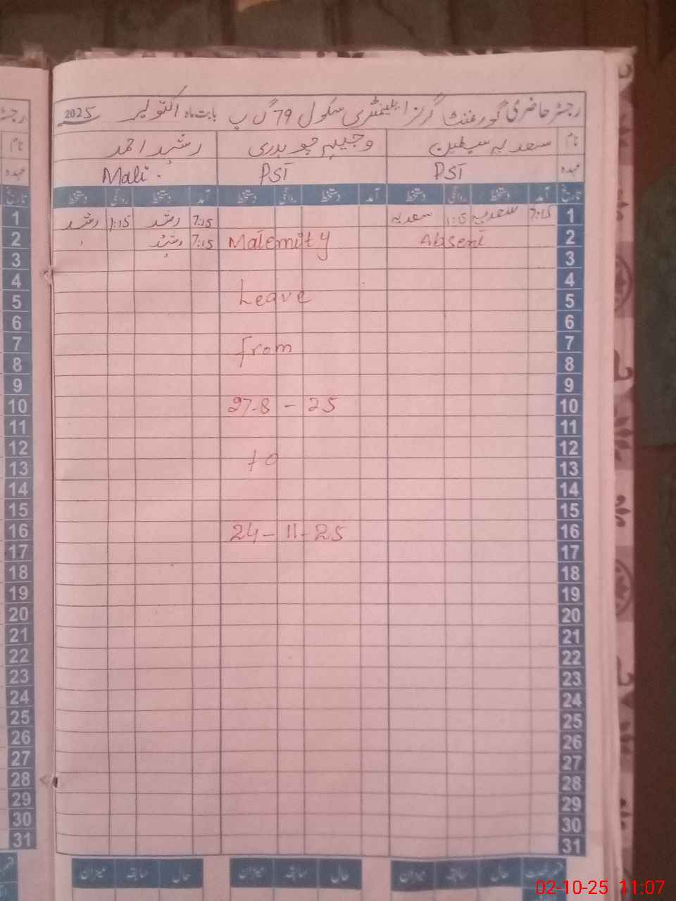 | 33**** | Wa**** Ch**** | PST | Regular | 30 | 0 | 0 | 30 | 0 | 0 | 0 | 0 | 0 | Maternity |