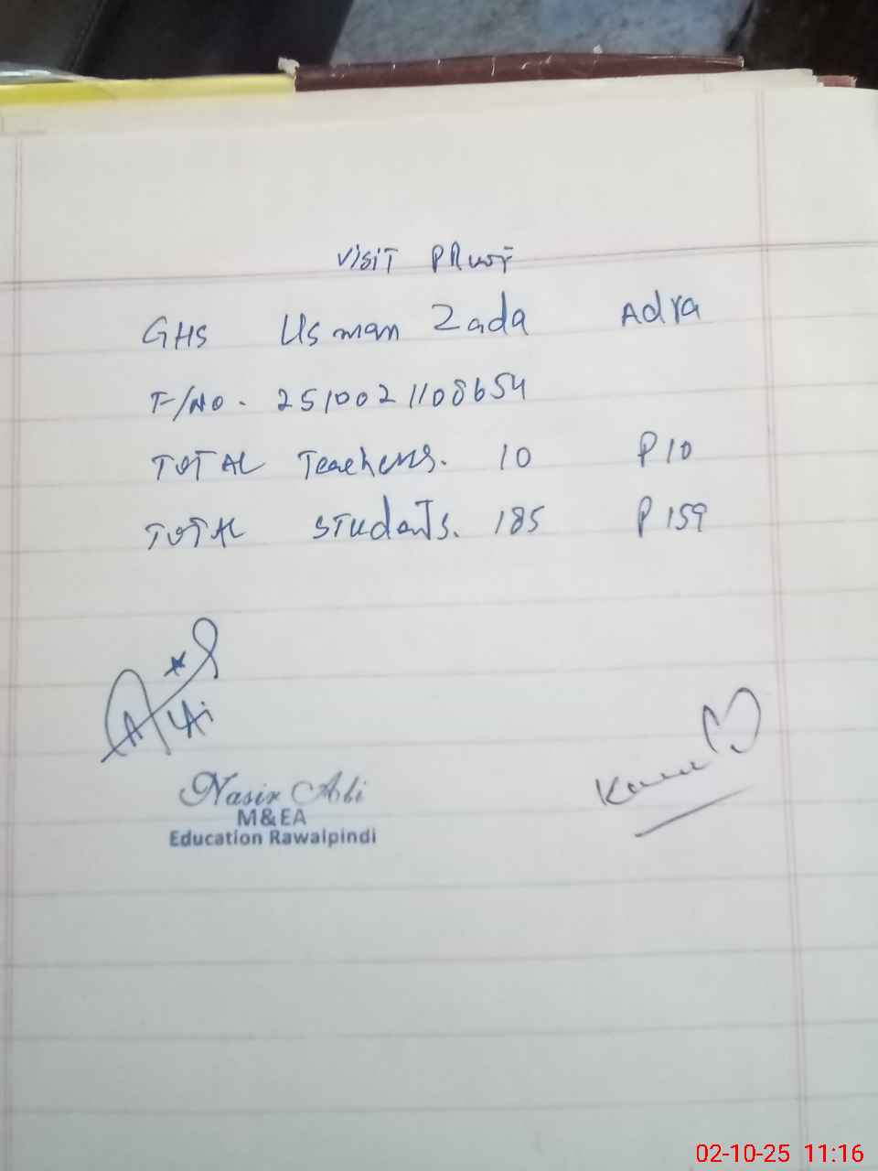 | EMIS Code: 37360084 | Name of School: GHS USMAN ZADA ADRAH | |||