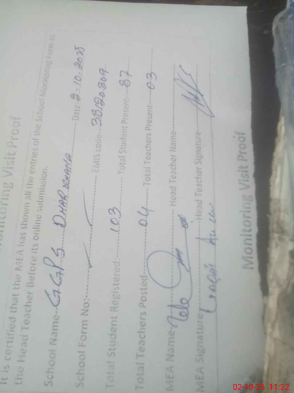| Certified that this School was Inspected by the Undersigned MEA/DMO Today and the Information Stated Above is as Per Record. | |||||