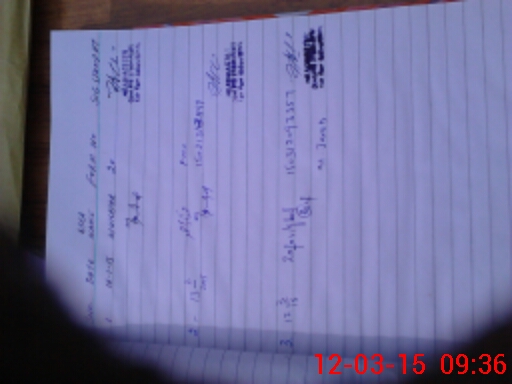 | Monitoring Date: 12-03-2015 | Start Time: 12-03-2015 09:16 AM | End Time: 12-03-2015 09:37 AM | Name of MEA: Za**** Iq**** BN**** | |