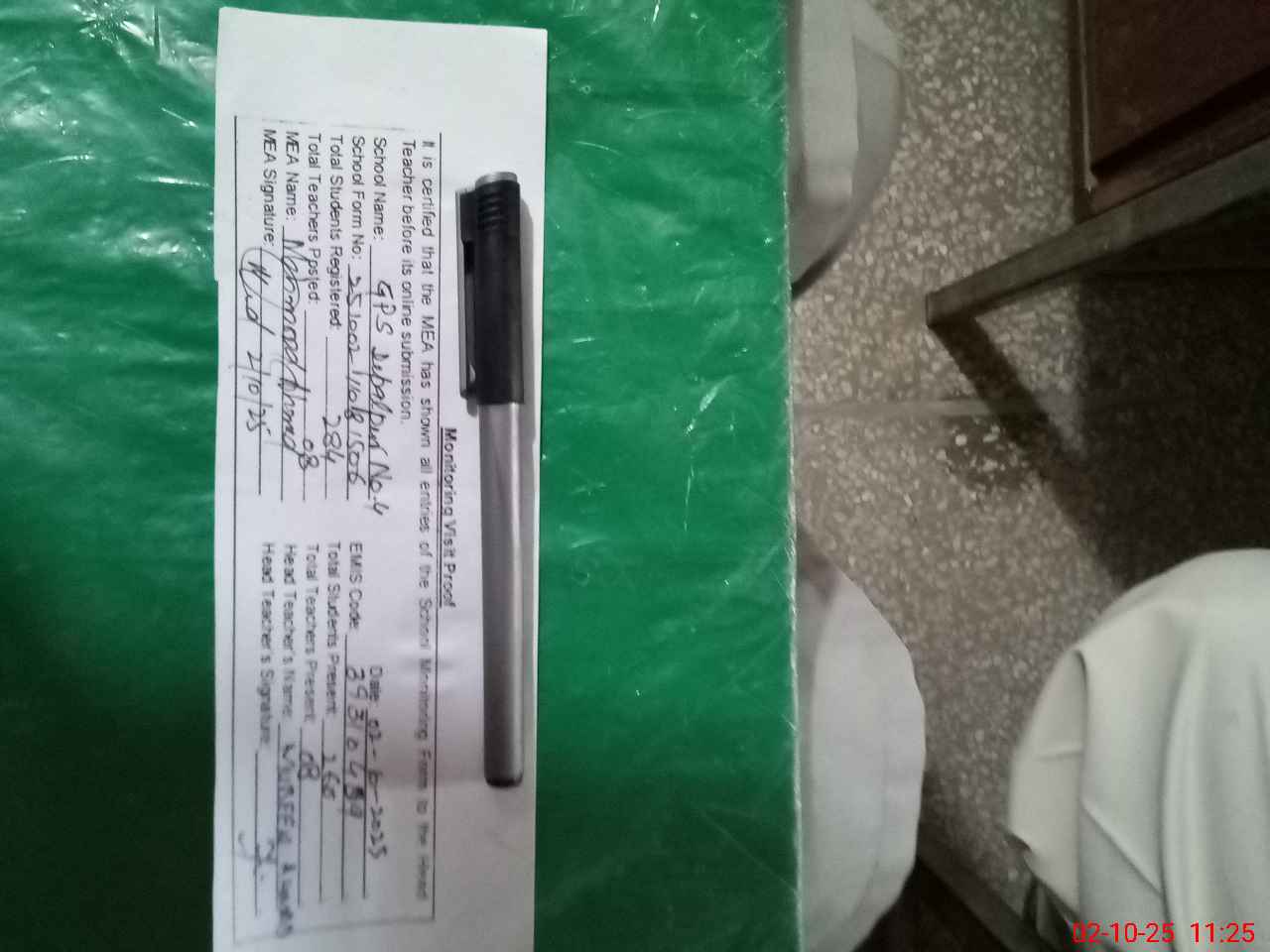 | Attendance Register | Head Teacher | MEA with School | Visit Proof |