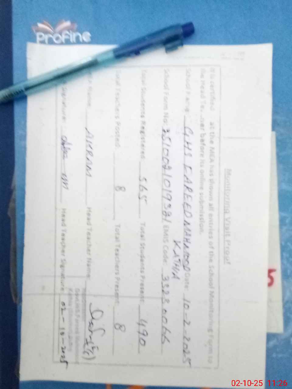 | EMIS Code: 33230066 | Name of School: GHS FAREED MAHMOOD KATHIA | |||