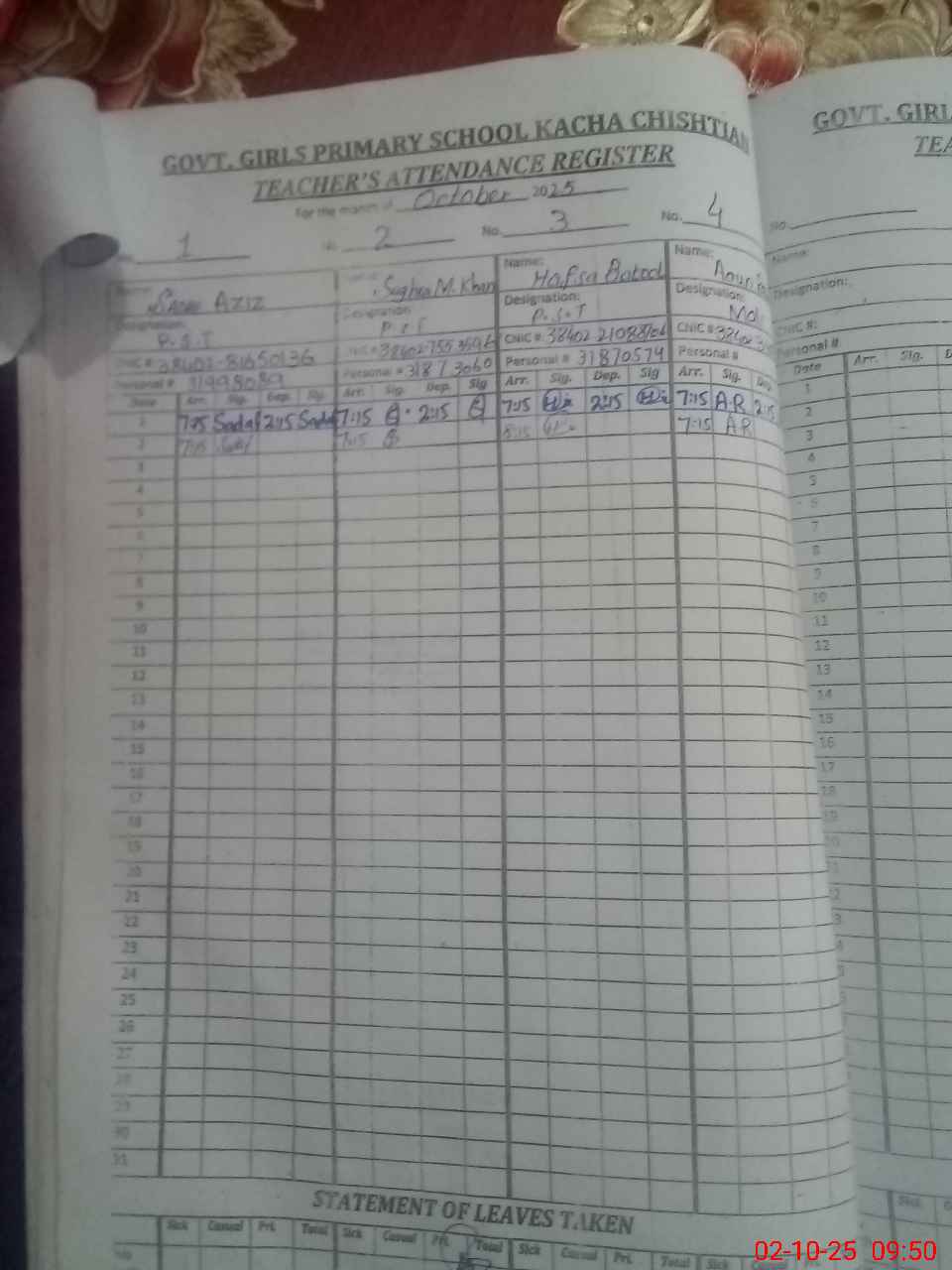 | Name: SA**** AZ**** Designation: (School Headmaster's/Headmistress's) PST Phone/Cell Number: 03**** |