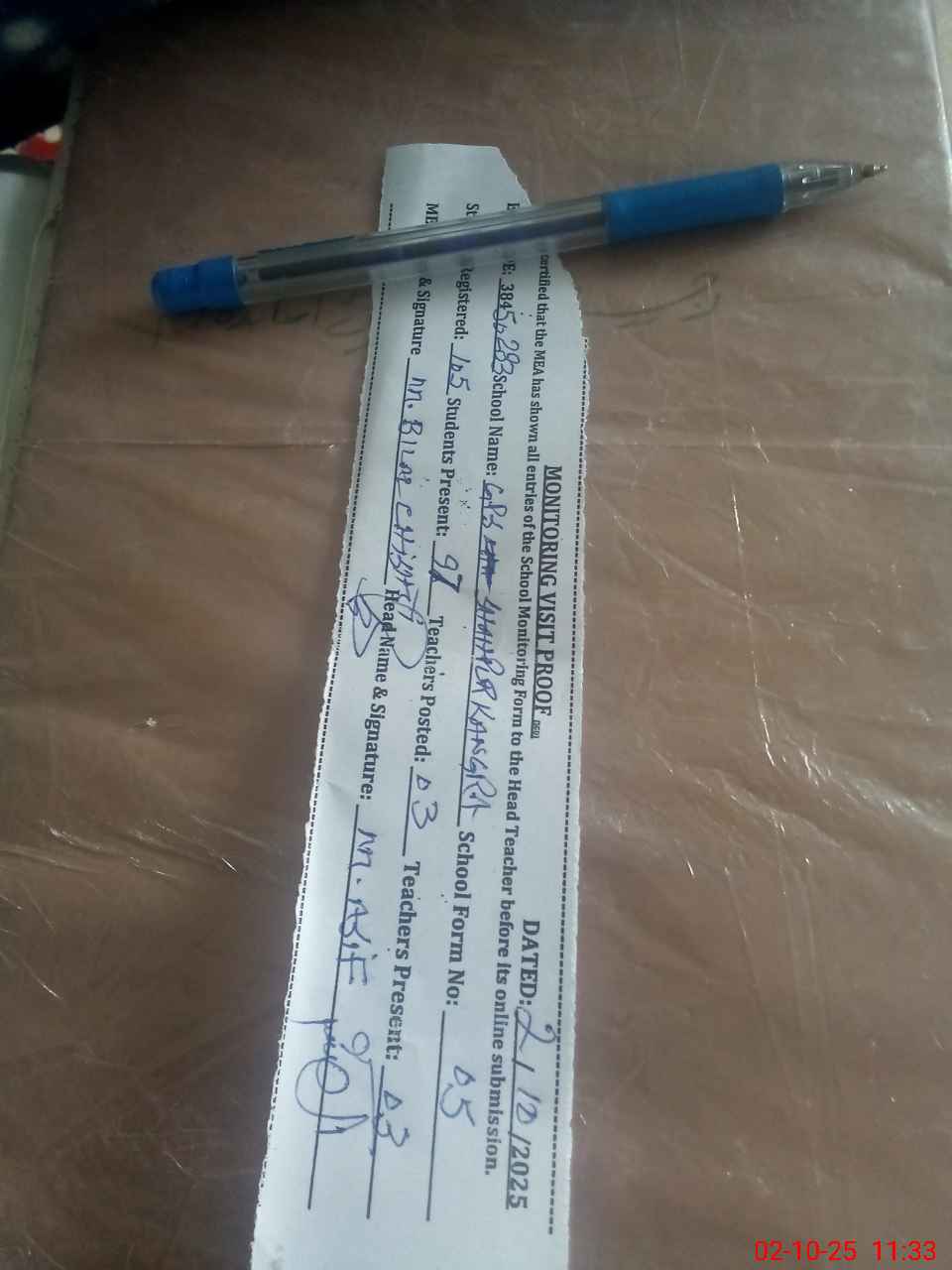 | Attendance Register | Head Teacher | MEA with School | Visit Proof |