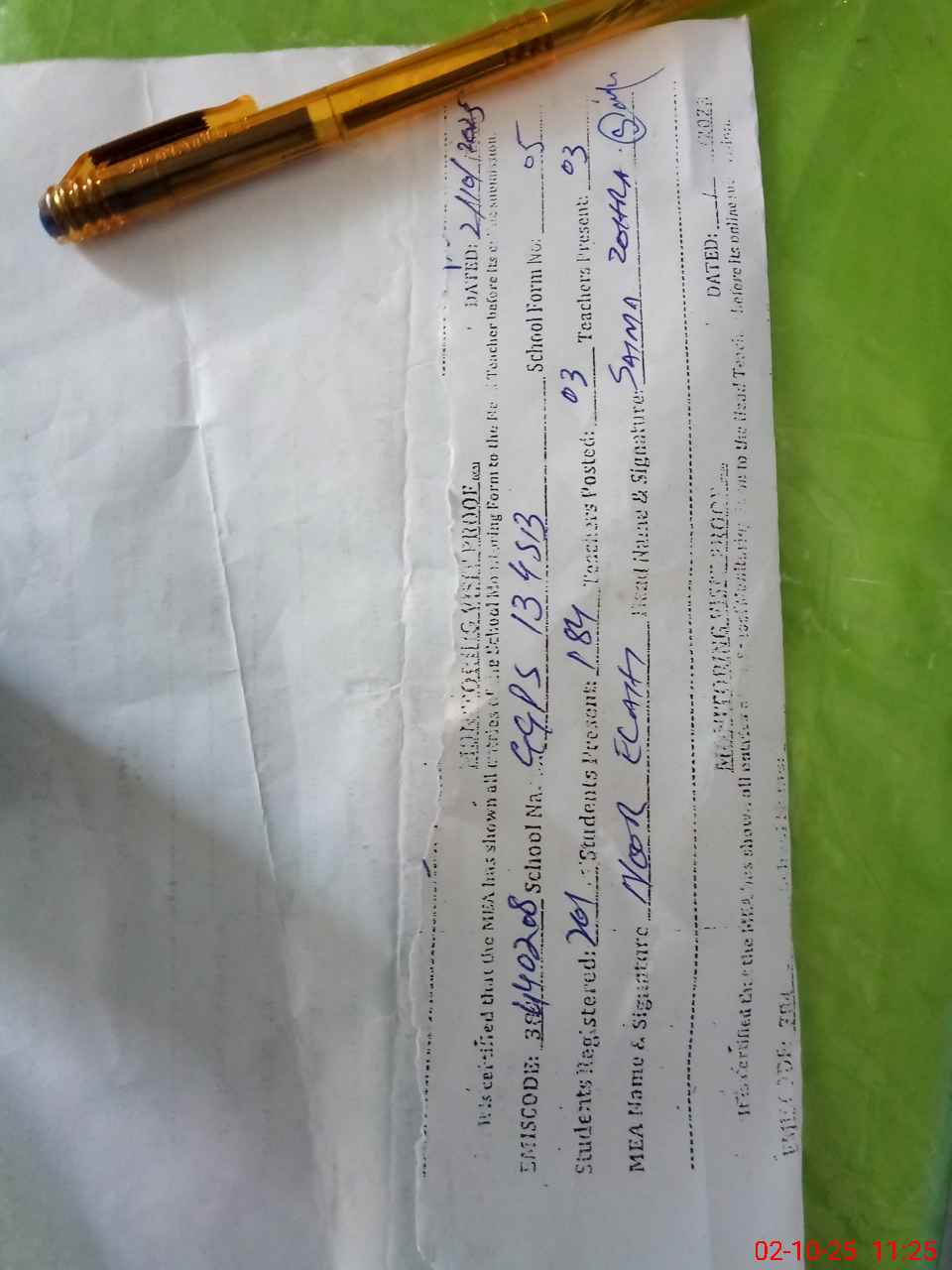 | Certified that this School was Inspected by the Undersigned MEA/DMO Today and the Information Stated Above is as Per Record. | |||||