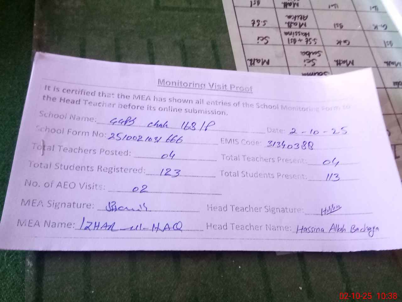 | EMIS Code: 31340388 | Name of School: GGPS CHAK 168/P | |||