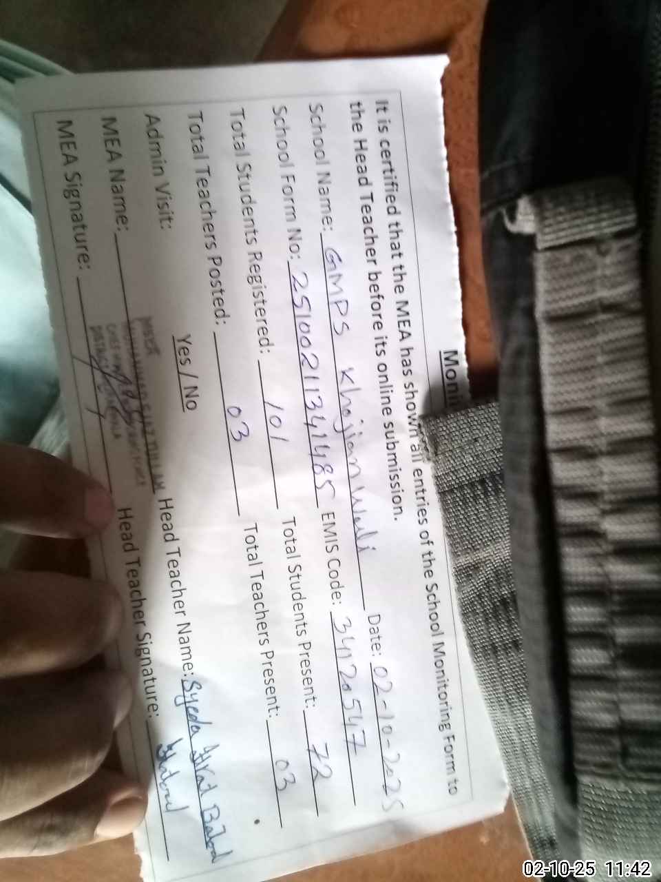 | EMIS Code: 34120547 | Name of School: GMPS KHOJIAN WALA | |||