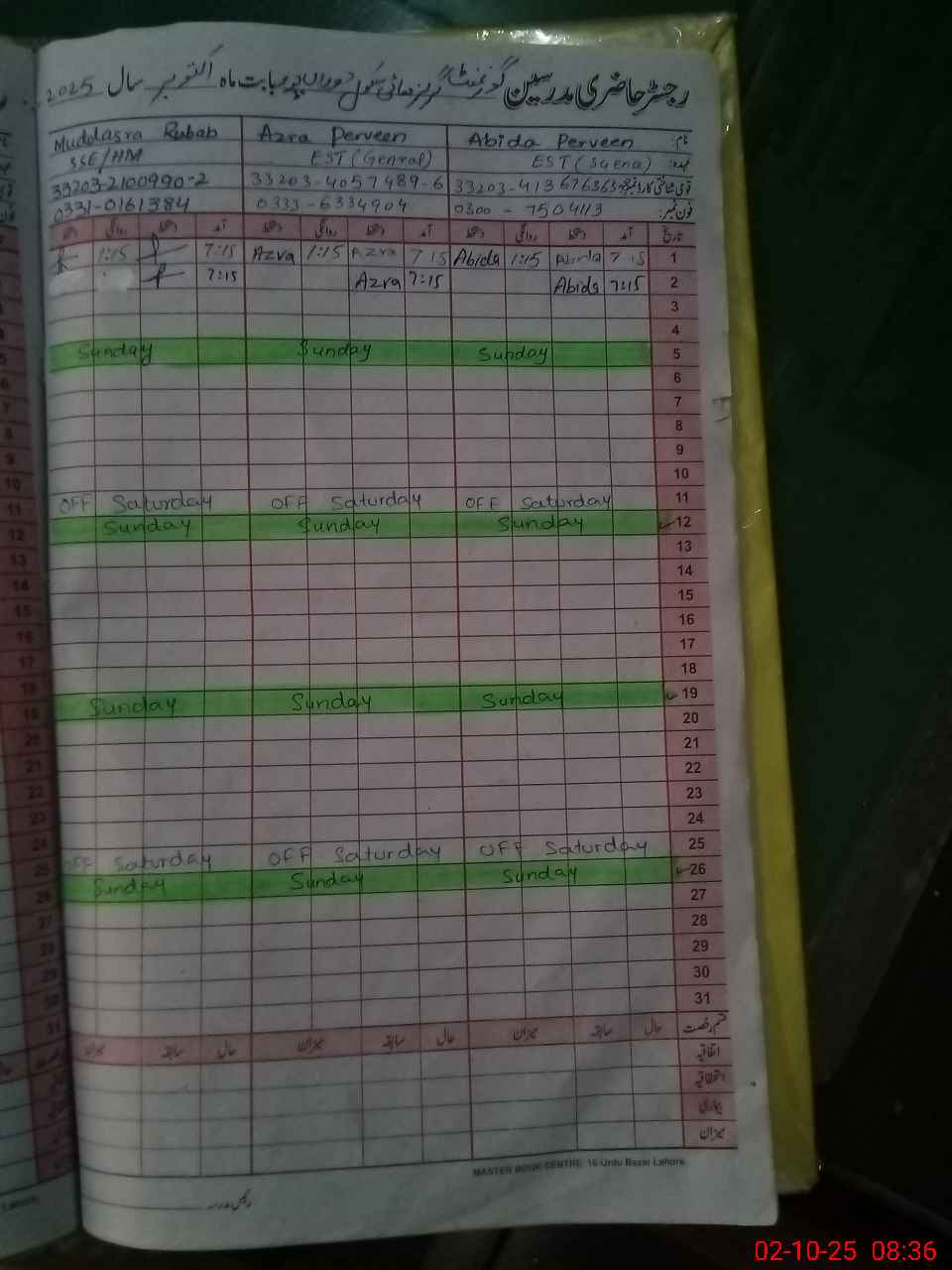 | CNIC | Full Name | Designation | R/C | Absence During Last Calender Month |