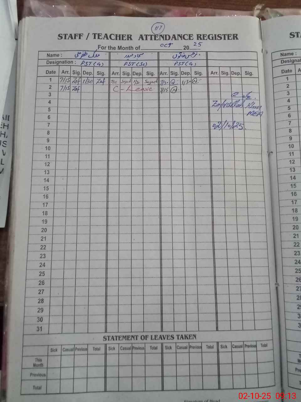 | 38**** | Am**** Ul**** Kh**** | EST | Regular | 0 | 0 | 0 | 0 | 0 | 0 | 0 | 0 | 0 | Exam Duty |
