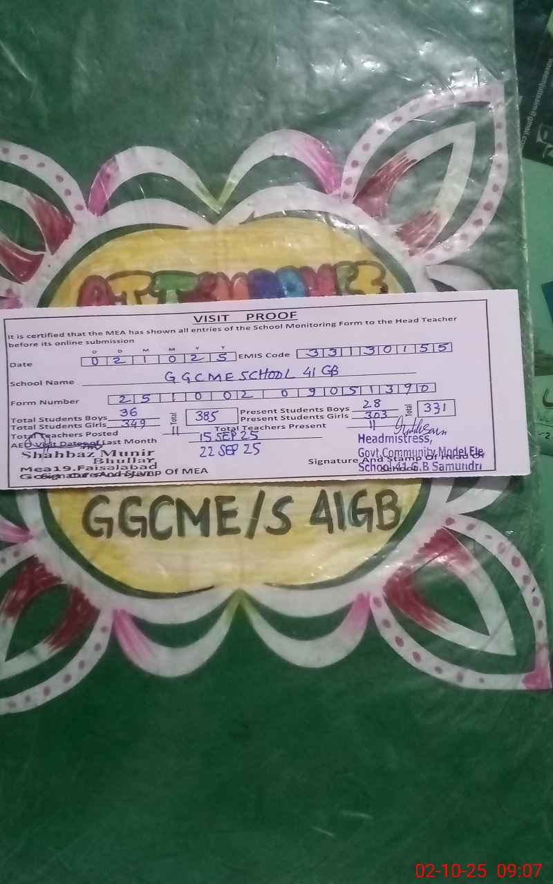 | EMIS Code: 33130155 | Name of School: GGCMES CHAK 41 GB SAMUNDRI | |||