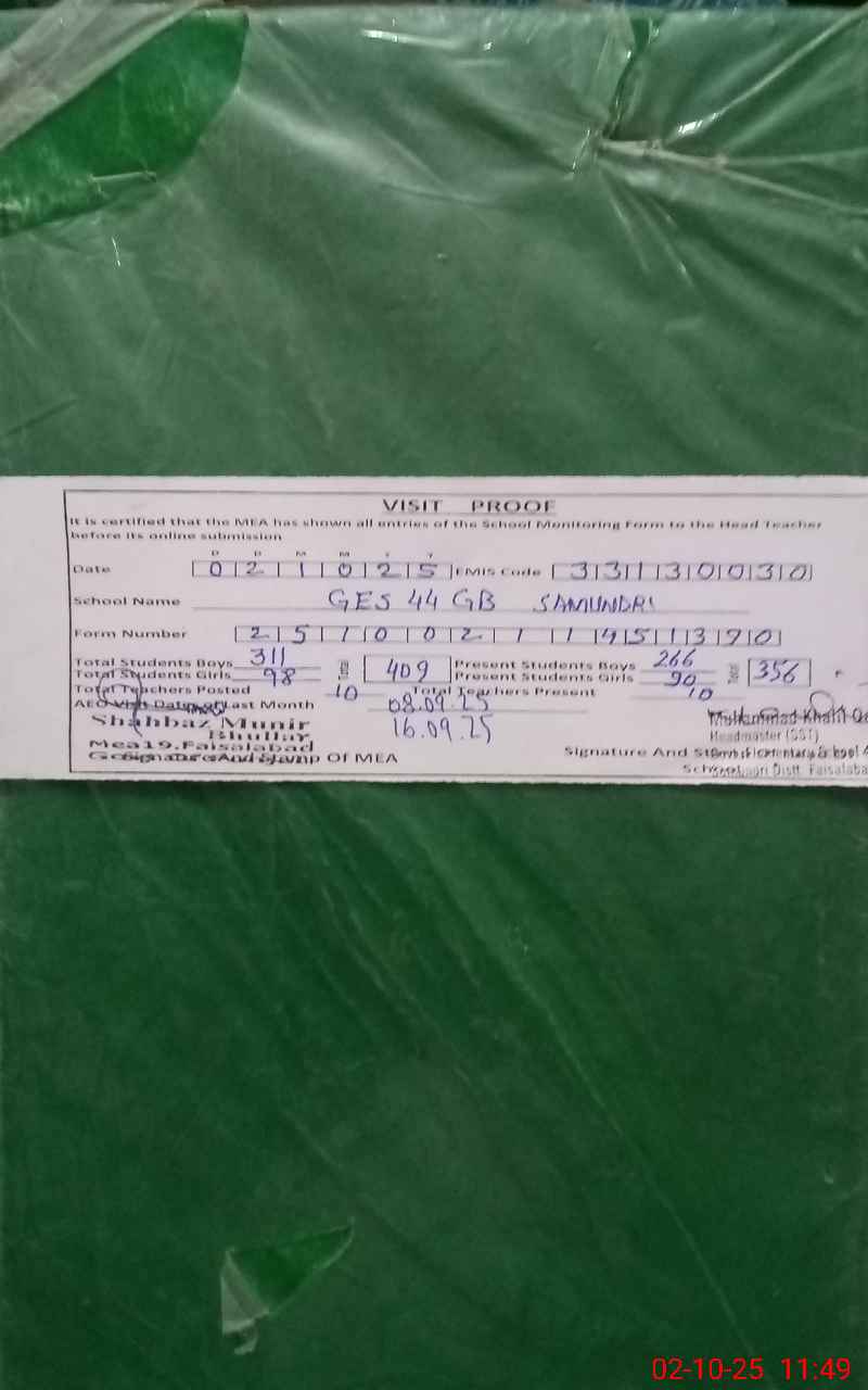 | EMIS Code: 33130030 | Name of School: GHS CHAK 44 GB SAMUNDRI | |||
