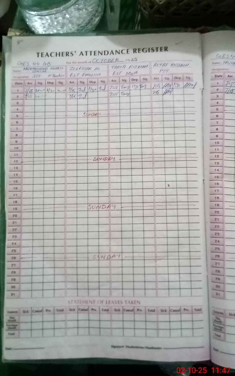 | Name: ZU**** AL**** Designation: (School Headmaster's/Headmistress's) EST (ENGLISH) Phone/Cell Number: 03**** |