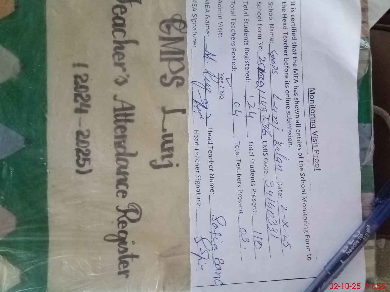 | EMIS Code: 34140331 | Name of School: GMPS LUNJ KALAN | |||