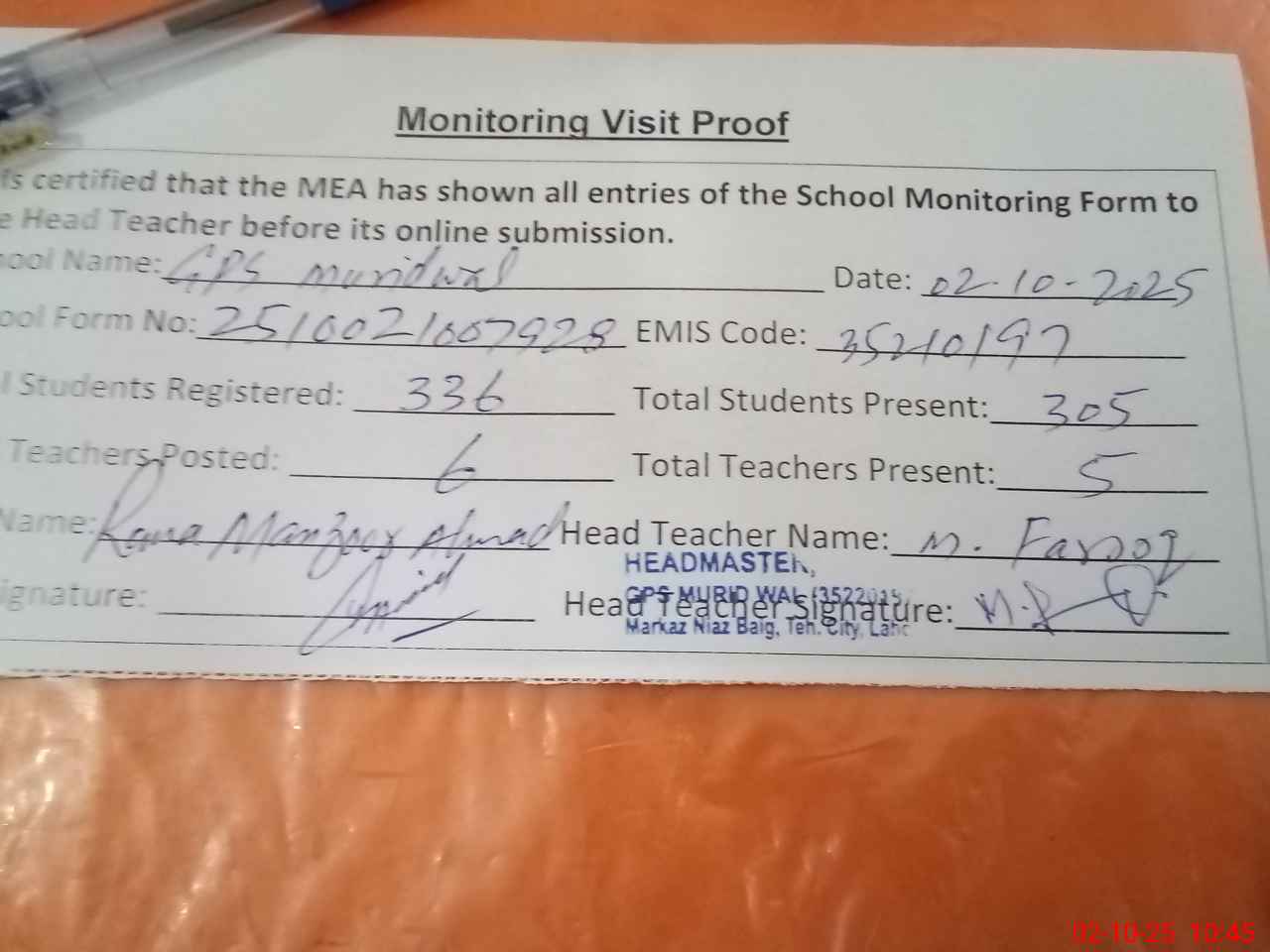 | EMIS Code: 35220197 | Name of School: GPS MURIDWALI | |||