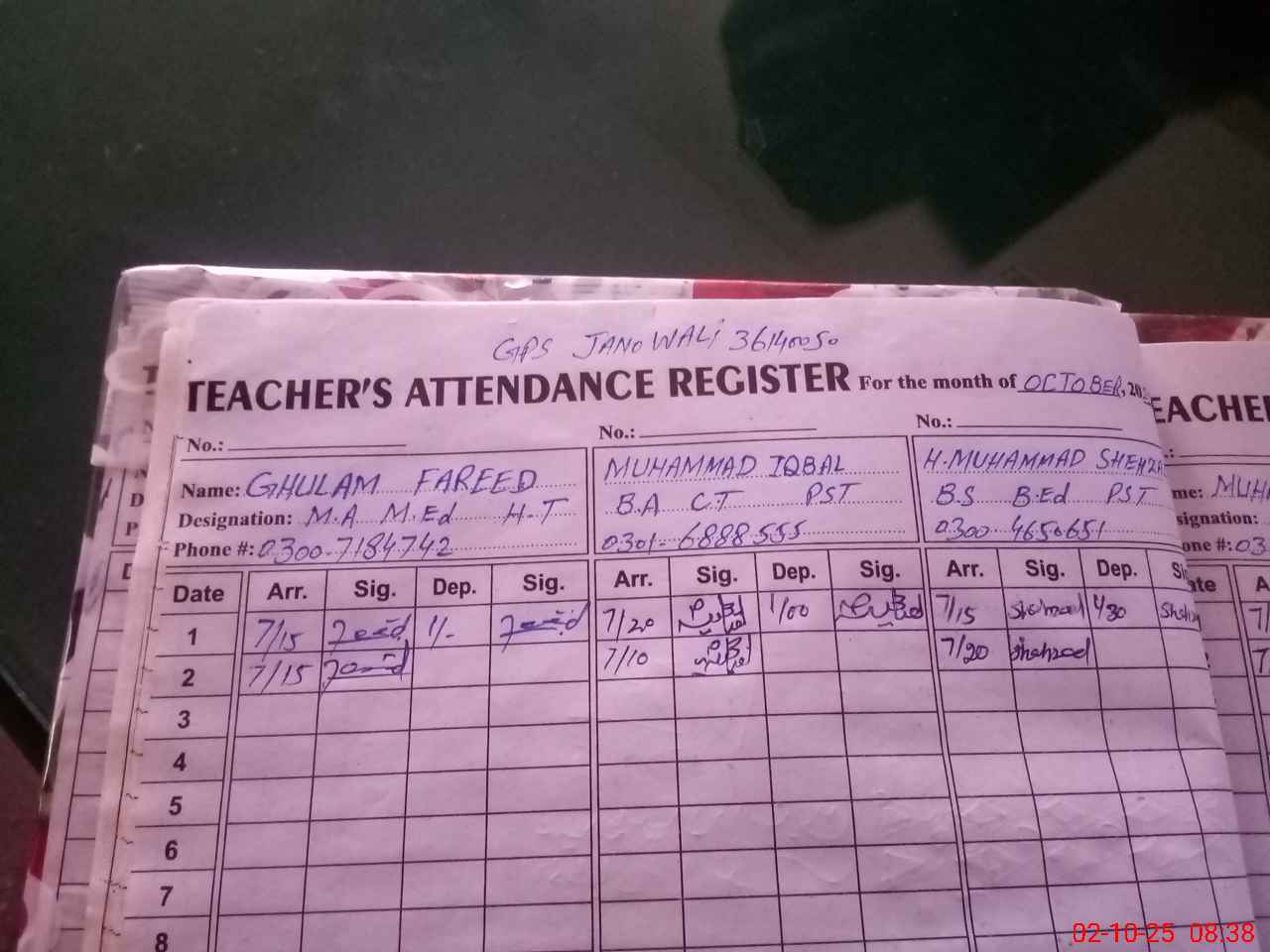 | Name: GH**** FA**** Designation: (School Headmaster's/Headmistress's) PST/PTC/JV Phone/Cell Number: 03**** |