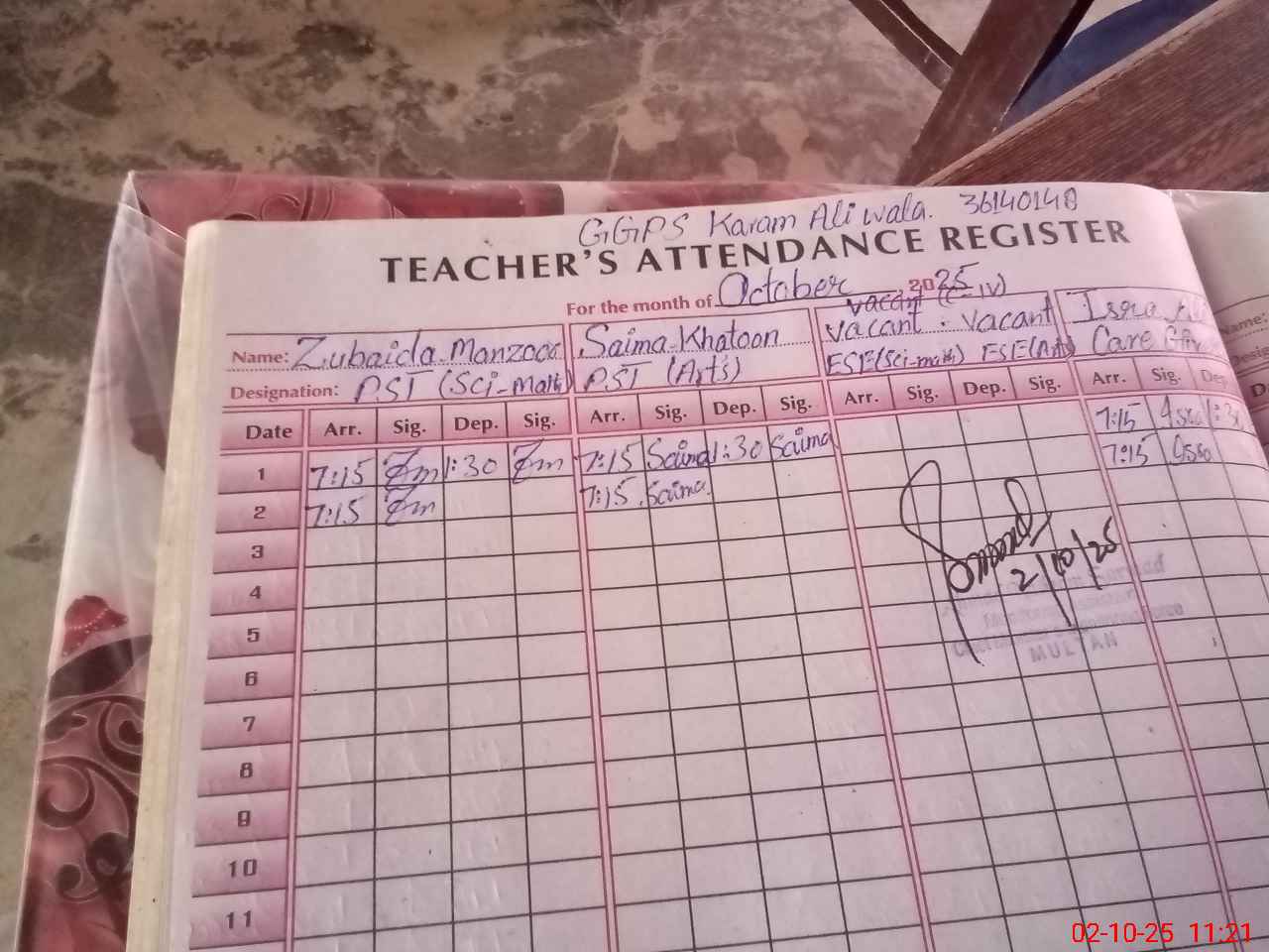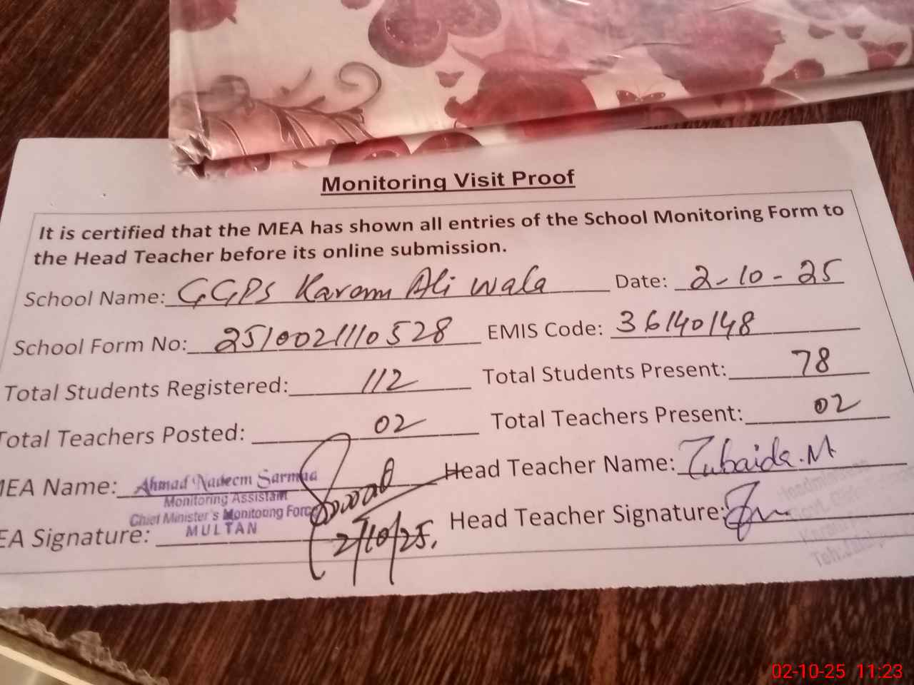 | EMIS Code: 36140148 | Name of School: GGPS KARAM ALI WALA | |||